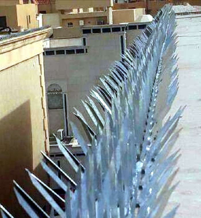 وضع الشبك يلجأ البعض إلى وضع الشبك كالأسلاك الصلبة المرتفعة إلى الأعلى؛ لمنع الحمام من الوقوف على المكان، وتعتبر هذه الطريقة فعّالة لطرد الحمام الموجود فوق اللوحات، والإعلانات التجاريّة المعلّقة على جدران المؤسسات والشركات.